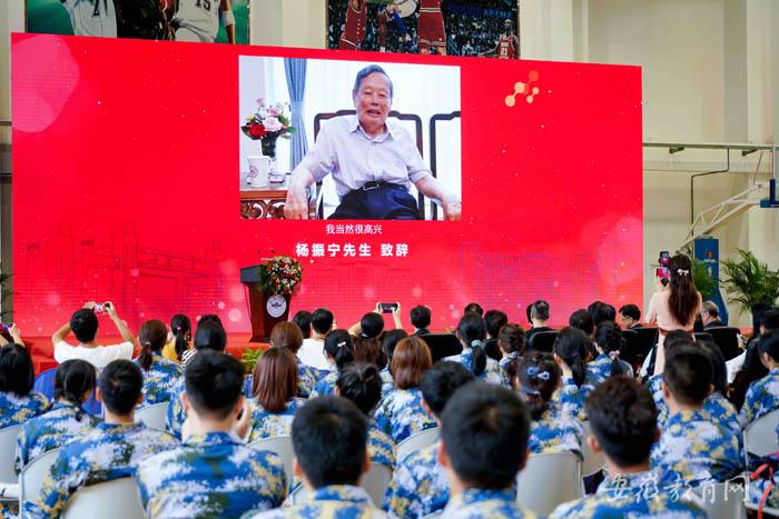 仪式现场播放了著名物理学家、诺贝尔奖获得者、安徽大学纽约石溪学院名誉院长杨振宁的祝福视频,杨振宁在致辞中表示,“安徽大学跟石溪大学取得紧密联系是我非常高兴见到的”。同时,他叮嘱,要把学院建设好、发展好,办成中美高等教育交流的典范。